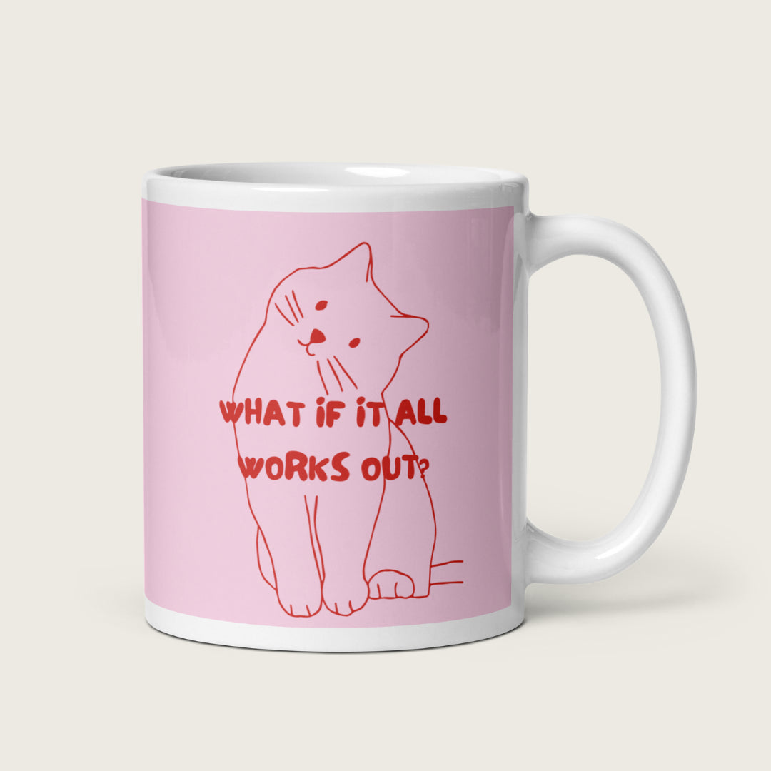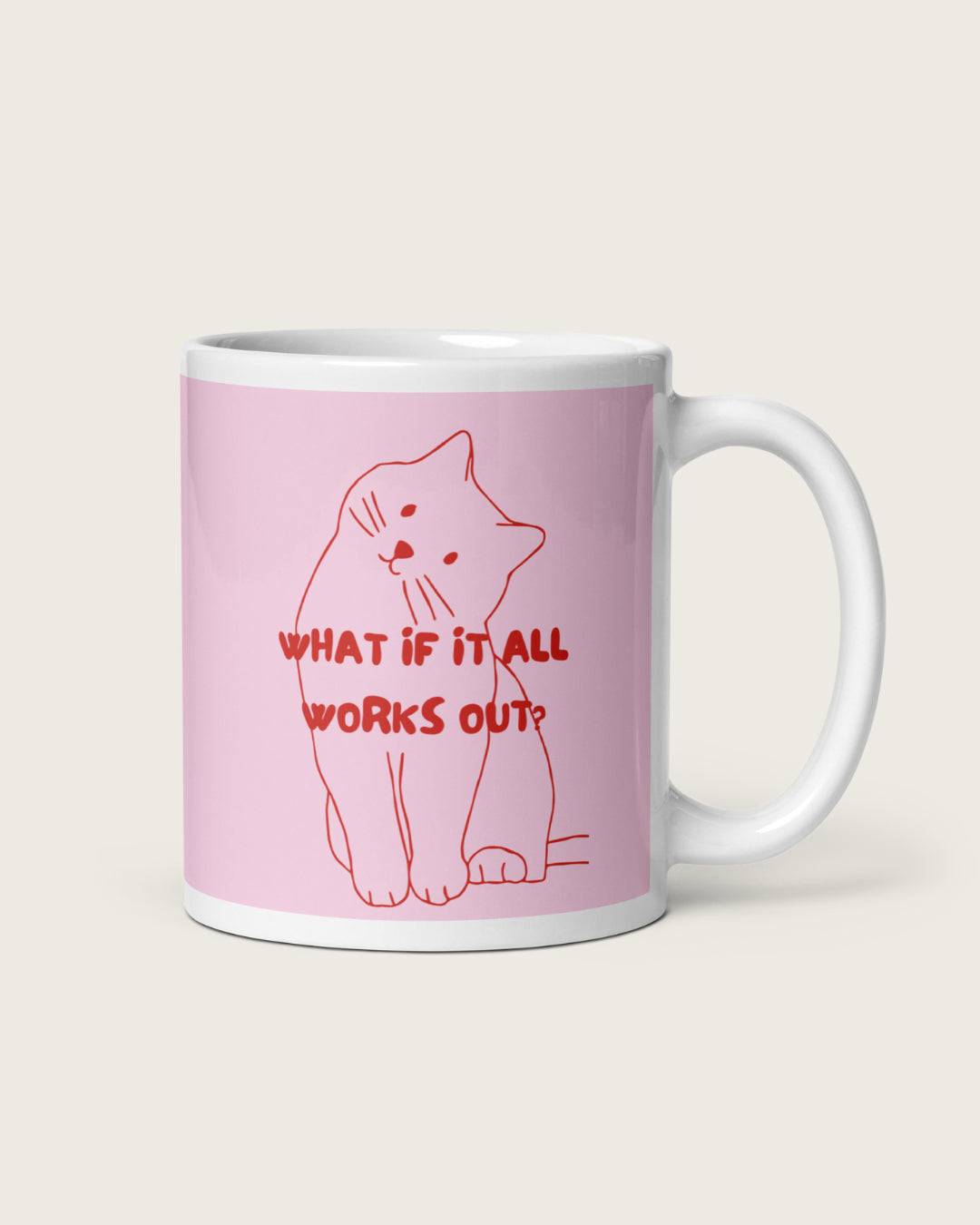 Ob Morgenkaffee, Tee am Abend oder einfach im Büro im Regal – diese Tasse mit dem Spruch "what if it all works out" ist dein Reminder für positive Vibes.